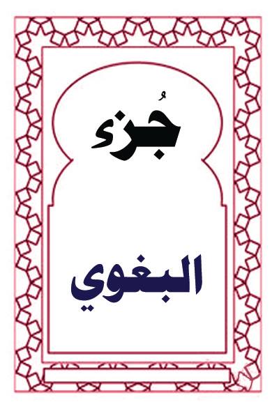 [جزء البغوي] (المؤلف) أبو القاسم عبد الله بن محمد بن عبد العزيز بن المَرْزُبان بن سابور بن شاهنشاه البغوي (317 هـ) . تخريج: أبي طالب محمد بن علي بن الفتح العشاري (451 هـ) . (اسم الكتاب الذي طبع به ووصف أشهر طبعاته) طبع باسم: جزء فيه ثلاثة وثلاثون حديثًا من حديث أبي القاسم عبد الله بن محمد البغوي بتحقيق محمد ياسين محمد إدريس، وقد صدر عن مكتبة ابن الجوزي بالدمام - المملكة العربية السعودية، 1407 هـ. (توثيق نسبة الكتاب إلى مؤلفه) ثبتت نسبة هذا الكتاب إلى الإمام البغوي رحمه الله، ويدل على ذلك ما يلي: 1 - رواية الكتاب بالسند الصحيح المتصل إلى المؤلف. 2 - نسبه إليه حاجي خليفة في كشف الظنون (186) ، و سزگين في تاريخ التراث العربي (1) . (وصف الكتاب ومنهجه) 1 - والكتاب الذي بين أيدينا عبارة عن جزء جمع فيه البغوي بعض الأحاديث عن مشايخه، وهي أحاديث في موضوعات مختلف ... المزيد